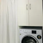 Mikrovågsugn, tvättmaskin och köksredskap finns också tillgängliga.